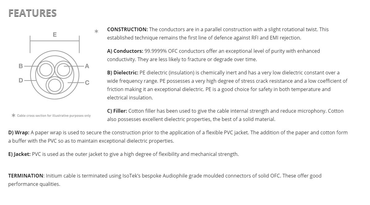 Cavo di alimentazione in rame puro O.F.C. 6N