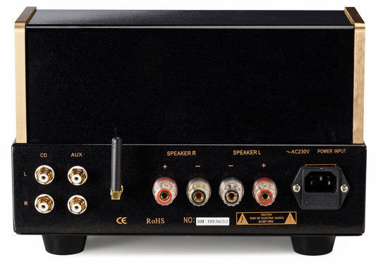 Creazione di un amplificatore ibrido a valvole/stato solido molto potente, dotato di un grande trasformatore di potenza avvolto con rame di alta qualità.• 4 coppie di transistor di potenza bipolari Toshiba • Condensatori di alimentazione Rubycon/Nichicon/Elna a seconda delle scorte.• Condensatori elettrici in polipropilene di Wilma e SCR (Francia)• By-pass completo...