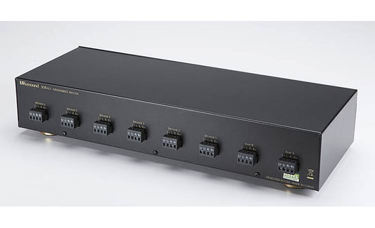 Selettore per 8 coppie di diffusori, con adattamento automaticodell’impedenza e filtro subsonico integrato. Accetta 2 ingressiamplificati (selezionabili): Amp 1 e Amp 2. Potenza: 200 WattRMS/canale. Incluse etichette per l'identificazione delle zone.Dimensioni: 43.5 x 7.5 x 20.5 cm (LxHxP) - Peso: 4.5 Kg