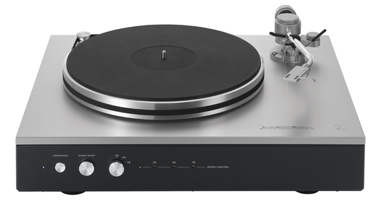 Versione senza coperchio (acquistabile a parte)Giradischi analogico trazione a cinghia piatto in alluminio massiccio anti-vibrazioni di 4 kg, motore DC senza spazzole con controllo PID montaggio flottante braccio ad S, velocità 33 1/3, 45 e 78 giri, shell testina staccabile dimensioni (WxHxD) 465x133x393 mm, peso 15,7 kg. Finitura Silver/Black.SpecPhono motor...