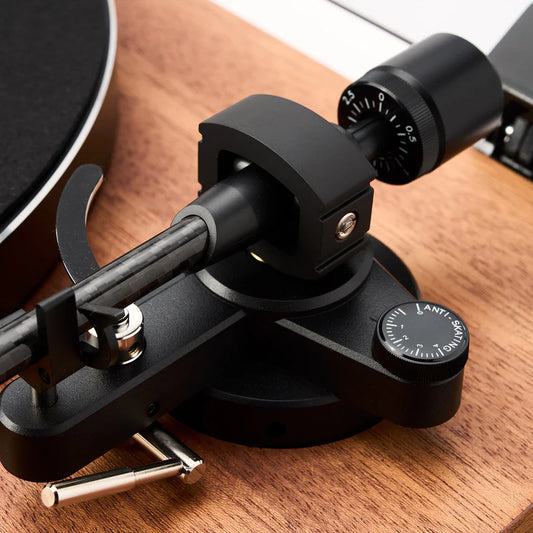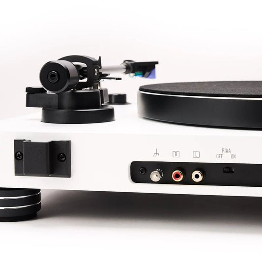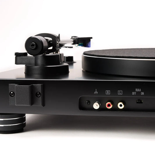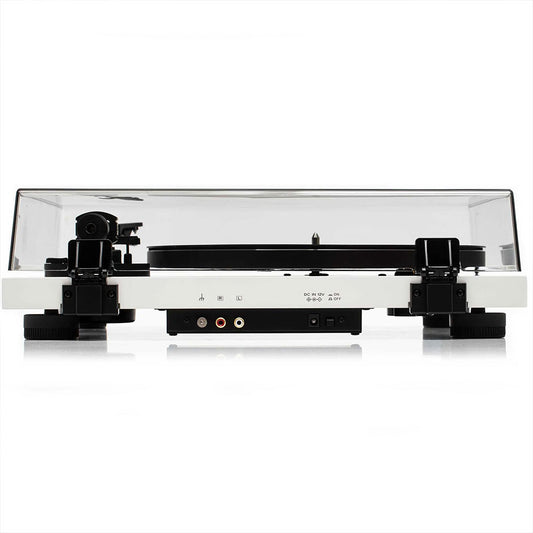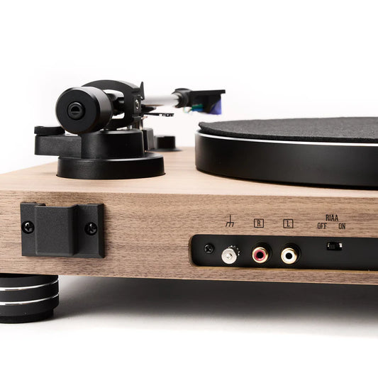 Giradischi all-in-one amplificato compreso di braccio da 8,6" in alluminio e di testina Ortofon. Trazione a cinghia. Piatto da 300mm anti-risonante in ABS. Motore in DC isolato dallo chassis. Manopola del volume sul frontale e display sulla parte superiore. Amplificatore da 2 x 50W su 4ohm. 1 ingresso linea RCA...