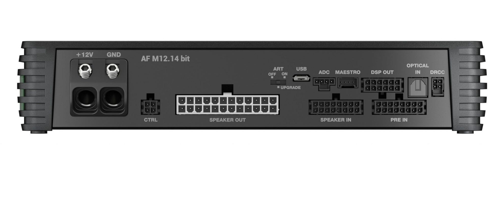 AF M12.14 bit vanta dodici canali amplificati ad alta fedeltà 60 x 12 @4Ω*, 90W x 12 @2Ω* con il suono audiofilo della tecnologia Audison D-Class di ultima generazione. Frequenze di commutazione più elevate, filtraggio più ripido e componenti a tolleranza più elevata offrono un suono al di sopra e al di là delle aspettative della Classe D, in un pacchetto incredibilmente compatto! Questo è combinato con il DSP nativo che funziona a 24 bit/96 kHz, estendendo la banda audio fino a 40 kHz e guadagnando l'ambita certificazione ad alta risoluzione. Il bridging delle coppie di canali si traduce in 180 x 6 @4Ω*, garantendo prestazioni flessibili e potenti. Il supporto per la funzione Absolute Volume di Audison B-CON garantisce la massima profondità di bit, anche con connessioni wireless!