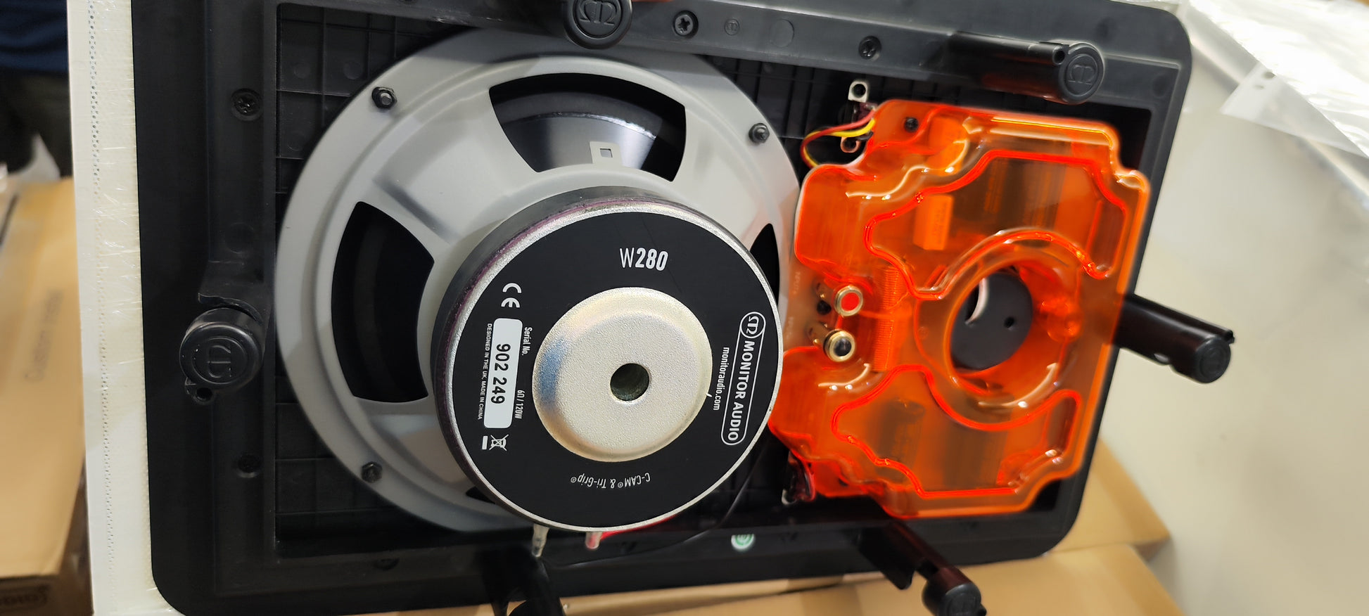 diffusori 2 vie ad incasso monitor audio modello W280 , diffusori 2 vie con regolazioni emissioni e tweeter orientabile, usate pochissime ore come nuove