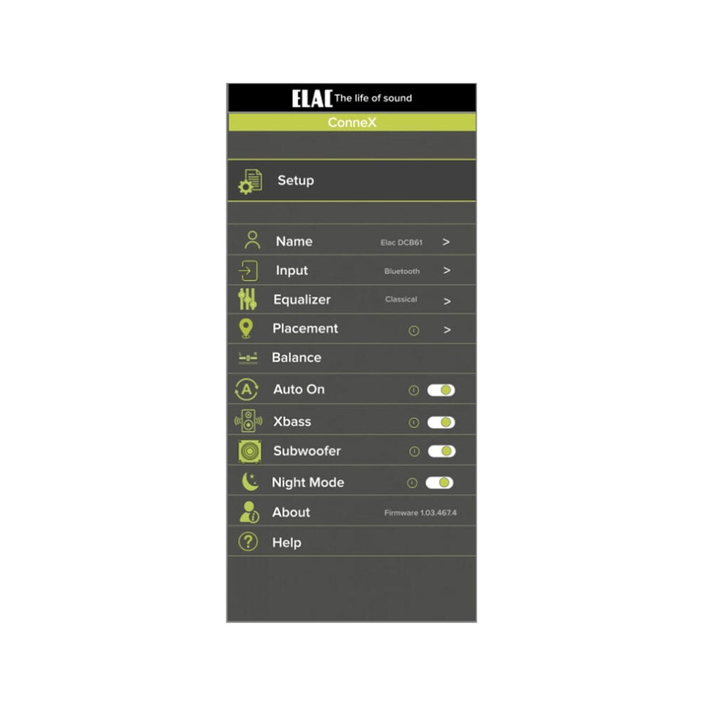 L’esperienza d’ascolto con i diffusori attivi ELAC Debut ConneX DCB61 si completa con l’app ufficiale ELAC, disponibile per dispositivi iOS e Android. Intuitiva, rapida e funzionale, ti permette di gestire in pochi tap tutte le principali impostazioni audio direttamente dal tuo smartphone o tablet.