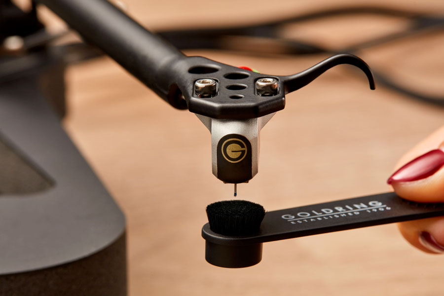 Lo stilo del giradischi attira inevitabilmente polvere e lanugine durante la riproduzione e si consiglia di effettuare un controllo quotidiano. Se lo stilo è contaminato da lanugine secca, è necessario utilizzare la spazzola antistatica per la pulizia dello stilo. Stendere delicatamente la spazzola in orizzontale sullo stilo, da dietro a davanti, esercitando la minor pressione possibile verso l'alto. Le setole morbide e antistatiche, dotate di un cuscinetto resistente e durevole che non lascia residui, sollevano delicatamente i pelucchi secchi e la polvere.