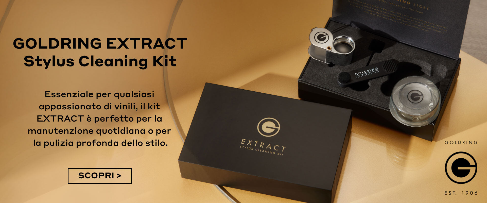 Goldring EXTRACT Stylus Cleaning Kit, un kit di strumenti essenziale per ogni appassionato di vinile, che offre tutto il necessario per mantenere lo stilo della testina del giradischi in condizioni immacolate. Sia che si tratti di una manutenzione quotidiana di routine o di una pulizia profonda, questo kit assicura che la vostra delicata puntina rimanga in condizioni ottimali, senza il rischio di danni.