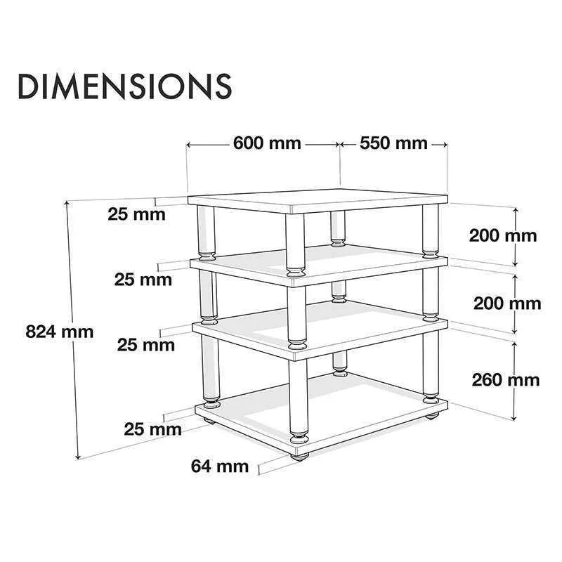 I ripiani in vetro temprato nero di Norstone Stabbl HiFi gli conferiscono una linea molto elegante che si adatta ad ogni stile. Importante ricordare l’aspetto sicurezza: il vetro temperato con questo spessore ha una rigidità ed una resistenza incredibile e, anche in caso di rottura per incidente o fortissimo impatto non lascerà alcuna parte tagliente sbriciolandosi in micro frammenti. In questo modo l’incolumità della famiglia è sempre garantita, in ogni caso sempre e comunque. I quattro livelli di appoggio di ampie dimensioni sono perfetti per ospitare tutti gli elementi dei sistemi ad alta fedeltà o Home Theater, compresi i componenti più pesanti ed ingombranti. Il ripiani possono sopportare un carico di 50 Kg ciascuno, per un carico totale massimo di ben 200 Kg.