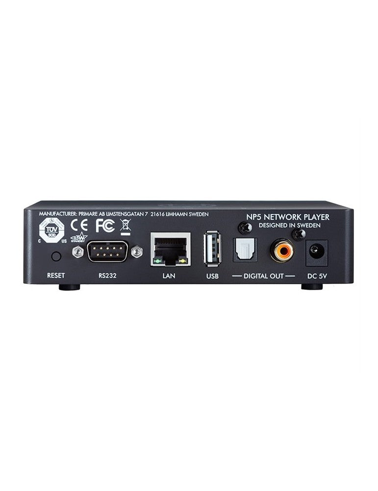 Lettore Audio in grado di fornire la tecnologia di controllo e connettività Prisma di Primare a qualsiasi dispositivo audio con un ingresso digitale. AirPlay 2, Bluetooth, Chromecast integrato, Roon Ready, Spotify Connect. Supporto MQA. Controllo vocale tramite dispositivi Google Home e Google Assistant. Controllo di un NAS di rete con streaming 24/192kHz PCM e DSD128, tramite l'App dedicata Prisma. Regolazione del volume e selezione degli ingressi per i modelli Primare dotati di RS232 tramite App Prisma. Ingressi: Presa Ethernet (LAN), Wireless (WLAN) e USB A. Uscite digitali: RCA SPDIF e Ottica Toslink, selezionabili a 48, 96 o 192kHz. RS232. Dimensioni (LxAxP): 143x36x125mm.